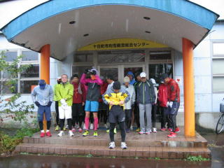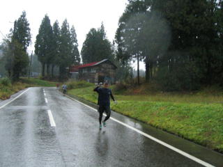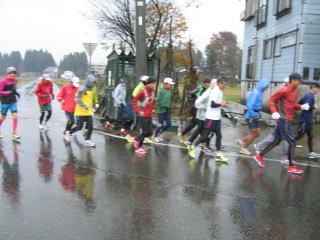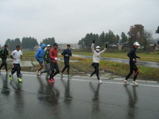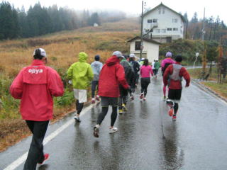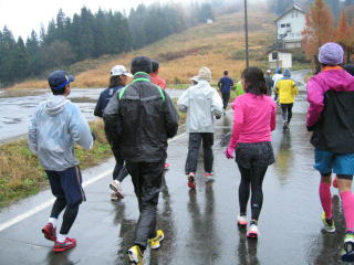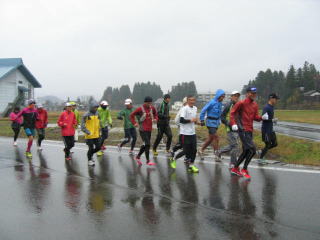 今年も女性3名を含めた全員、雨の中へ向かって走り始めました。