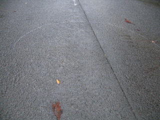 チョークでUターンの案内が書いてあります、他にも分岐点には道しるべが書いてありました、ご苦労様です。