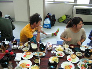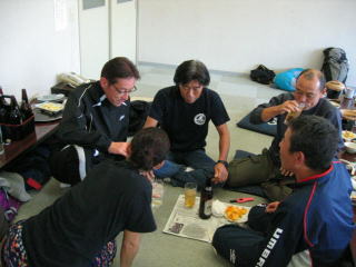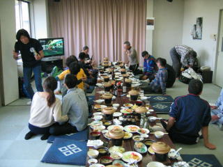 宴会場に荷物を置いて、着替えて(と言ってもジャージを脱ぐだけ)玄関へ向かいます。