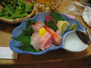 写真の枝豆とおつくりは1人前で量もたっぷりでした。