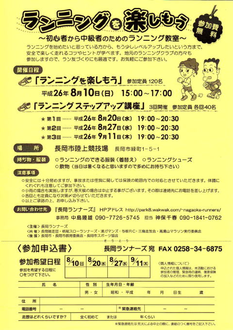 平成26年8月10日(日) 長岡ランナーズ主催の「ランニング教室」に参加しました。