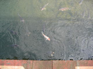 橋の両脇は大きな鯉が泳いでいます。
