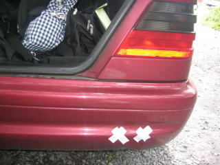 朝、駐車する時にあせってバックしたらリアバンパーを石にぶつけてしまいました。