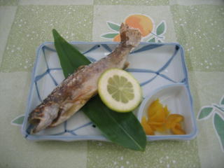 「国定忠治の切り込みうどん」900円、「いわな塩焼」600円です。