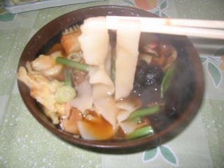 麺は平たく幅拡、ほうとう?のようです。