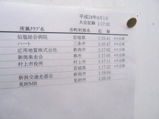 平成24年4月1日 村上市の「第26回笹川流れマラソン大会」のハーフに参加しました。