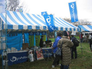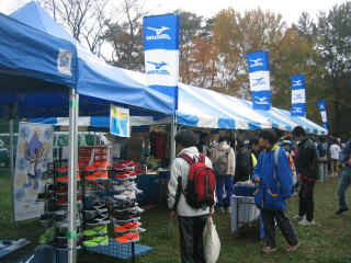 ミズノ、ファイテンなどのスポーツ用品も出店、行列ができています。