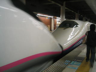 山形新幹線と秋田新幹線がランデブー走行、上越新幹線MAXときに乗って帰ります。