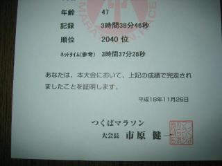 平成18年11月 茨城県の「第26回つくばマラソン」のフルマラソンに参加しました。
