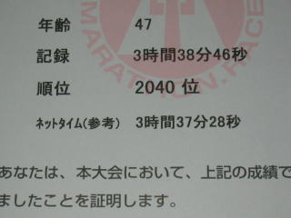 ネットでは03.37.28秒、グロス03.38.46秒の自己記録更新。