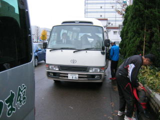 忘年会会場の「アクアーレ長岡」さんのバスに荷物を預けます。