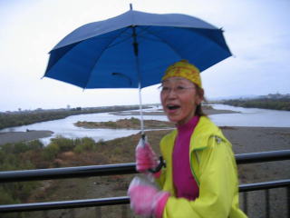 フェニックス大橋を傘をさして走っていた方は愛子さんでした。