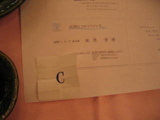 テーブル場所をくじ引きで決めます、今回は「C」でした。