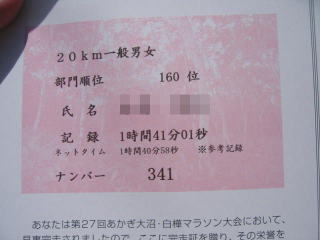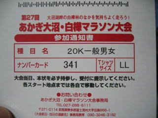 平成20年8月31日、群馬県の「第27回あかぎ大沼白樺マラソン大会」の20キロに参加しました。