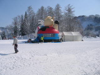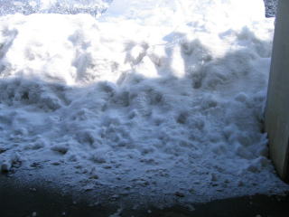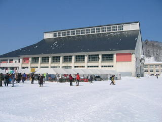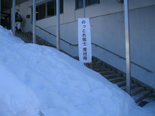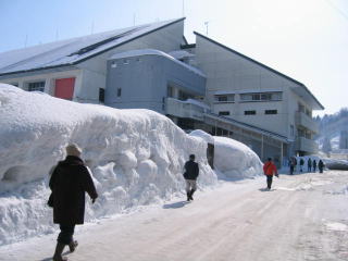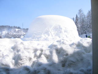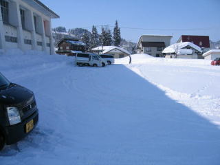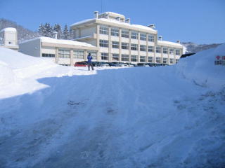 体育館下の雪の無い駐車場から見ると、今年の積雪は1mをゆうに超えているようです。