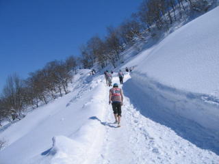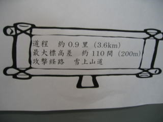 道程約0.9里(3.6km)、最大標高差約110間(200m)、攻撃経路雪上山道。