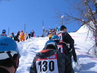 一人で登れないので、前後のランナーと助け合いながら登ります。