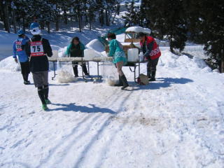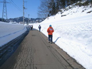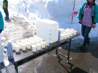 ここをクリアーすると、雪の無い舗装路になり、給水があります。
