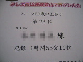 平成23年5月22日 長岡市の「第27回みしま西山連峰登山マラソン大会」のハーフに参加しました。