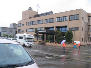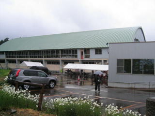 車はみしま支所に誘導され、歩いて1〜2分で受付の三島体育センターです。