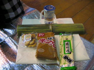 特徴ある参加賞、お酒、竹踏み、クッキー、お味噌、そうめん。