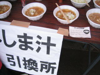 引換券を持ってみしま汁、おにぎりをいただきます。