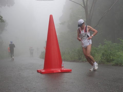 電波塔下のハーフの折返し地点、、ガスの中でちょっと神秘的!?