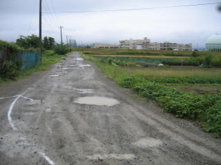 誘導ポイントは、2枚目の写真奥からやってきて、右コーナーで1枚目奥へ、その奥は信濃川堤防上の道路です。