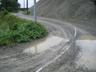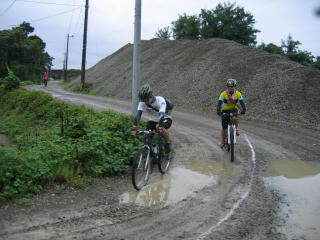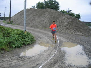雨の中のひどい道路状況ですが、元気に走っていきます。