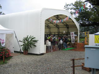 農業ハウスを大きく立派にしたような、巨大テントのような建物です。