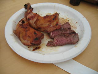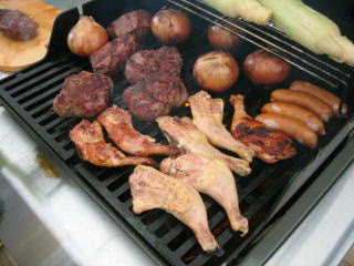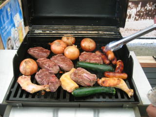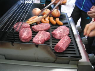 BBQですから、自分たちで焼きます、トングは焼いている時と焼いたの取り分け用と分けて使い、食中毒などに対策します。