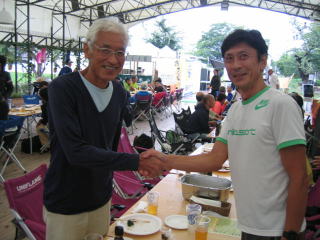 志田会長とWEB練習日記まさまさん、何やら意味深の握手。