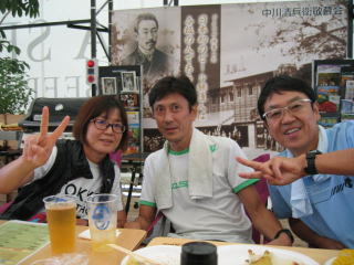 セブンさんは社交上手、ビールを注いで注ぎまくります。
