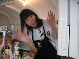 ホノルルで言うところの、ハコバス?ハコトラック?ハコバン?で、こちらの陽気で可愛いお姉さんがグレープフルーツ酎ハイやカシスサワーなどを作ってくれます。