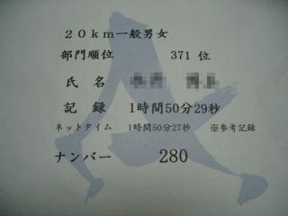 この大会の20キロは4回目ですが、ワースト記録を出してしまいました。