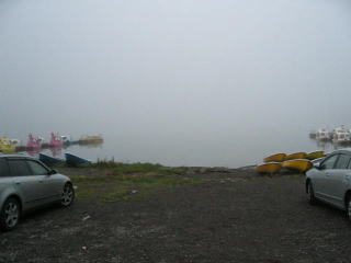 霧も一層濃くなり、大沼の対岸は全く見えません。