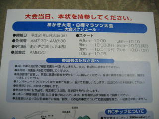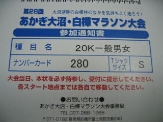 平成21年8月30日、群馬県の「第28回あかぎ大沼・白樺マラソン大会」の20キロに参加しました。