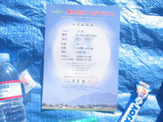 今年の参加賞はミズノの緑のエコバック、完走記録証を見ると「エコシティ」と書いてあります。