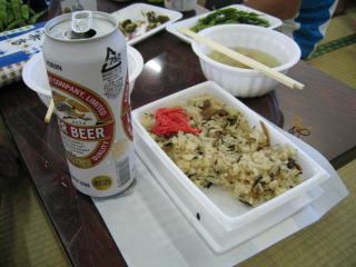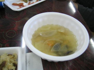 疲れました、フルワースト記録を更新し更に疲れました、温泉に入ってお弁当、とん汁をいただきます。