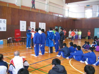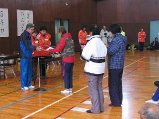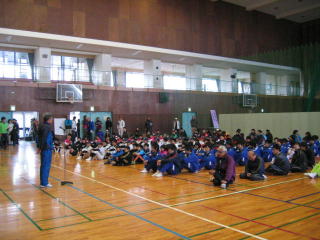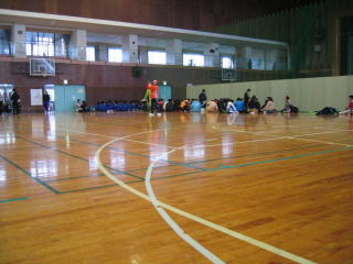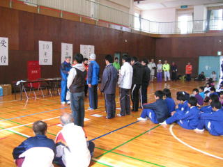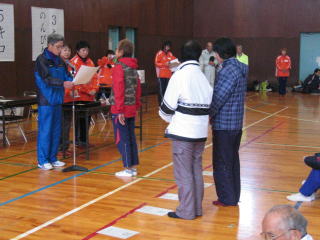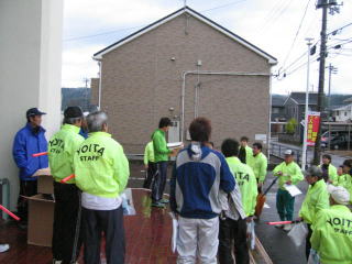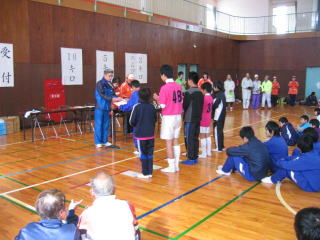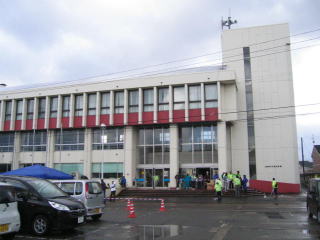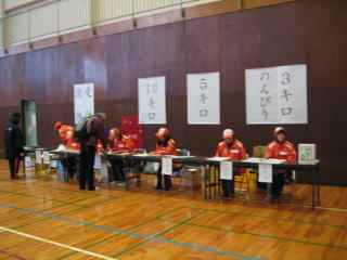 天気は小雨です、受付会場の与板体育館へ入ります。