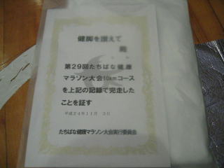 平成24年11月3日(祝・土) 長岡市与板の「第29回たちばな健康マラソン大会」の10キロに参加しました。