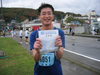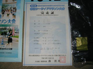 専務さんがゴールして完走証を持ってやってきました、自己記録更新です。