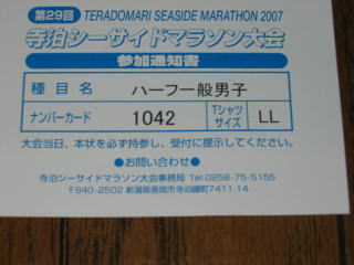 平成19年10月21日、長岡市の「第29回寺泊シーサイドマラソン大会」のハーフに参加しました。
