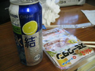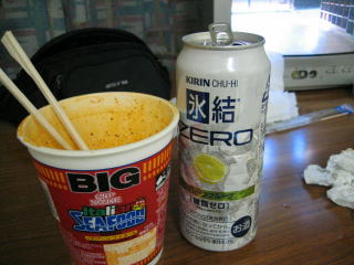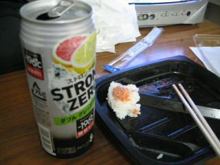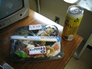 途中、ローソンでビールや弁当、おつまみなどを買います。