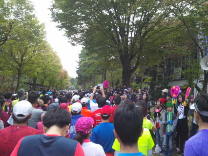 すごい仮装のランナーがいました、小さい女の子のチア―ガールも一生懸命応援してくれていました。