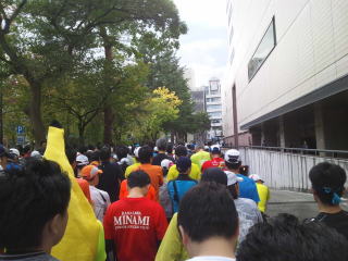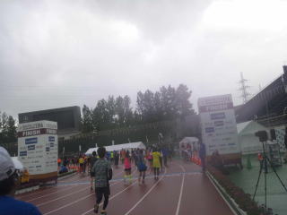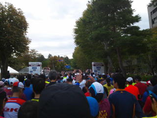 午前8時前、上着を脱いで荷物預けを済ませ、午前8時30分前にはスタートラインFブロックにつきました。