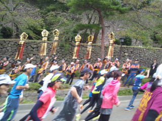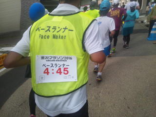 ガーミンが使えないので、ゆっくり目に走りましたが、4:45ペースランナーに追いつきました、指定ペースよりちょっと早いですが、ついていきます。