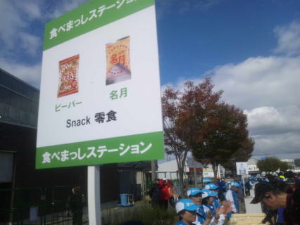 最初の「たべまっしステーション」、スナック菓子が振舞われます、こちらのパンフには載っていませんでした。