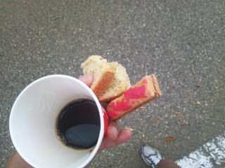 まだ正式に朝食は始まっていませんが、パンとバナナなら食事を始めてくださいということでした。