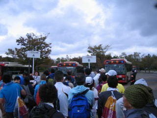 シャトルバス乗り場へ向かいます。